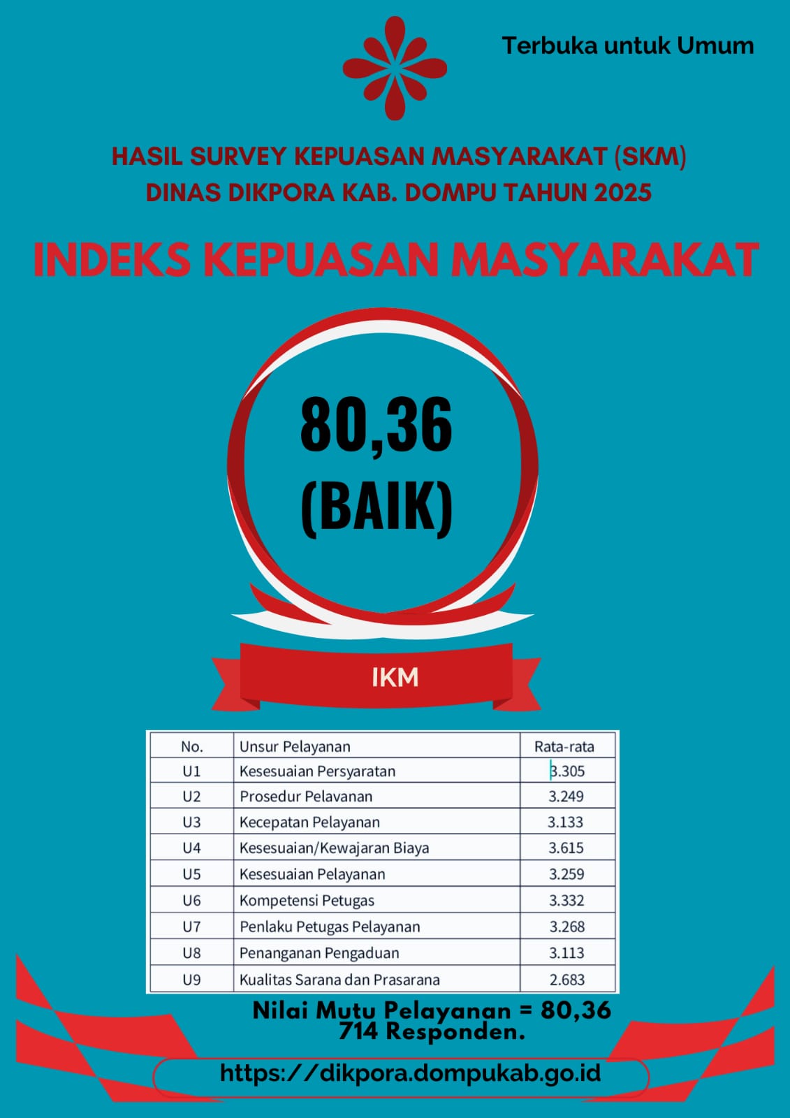 Hasil Survey Kepuasan Masyarakat Dinas Pendidikan Pemuda dan Olahraga Tahun 2025